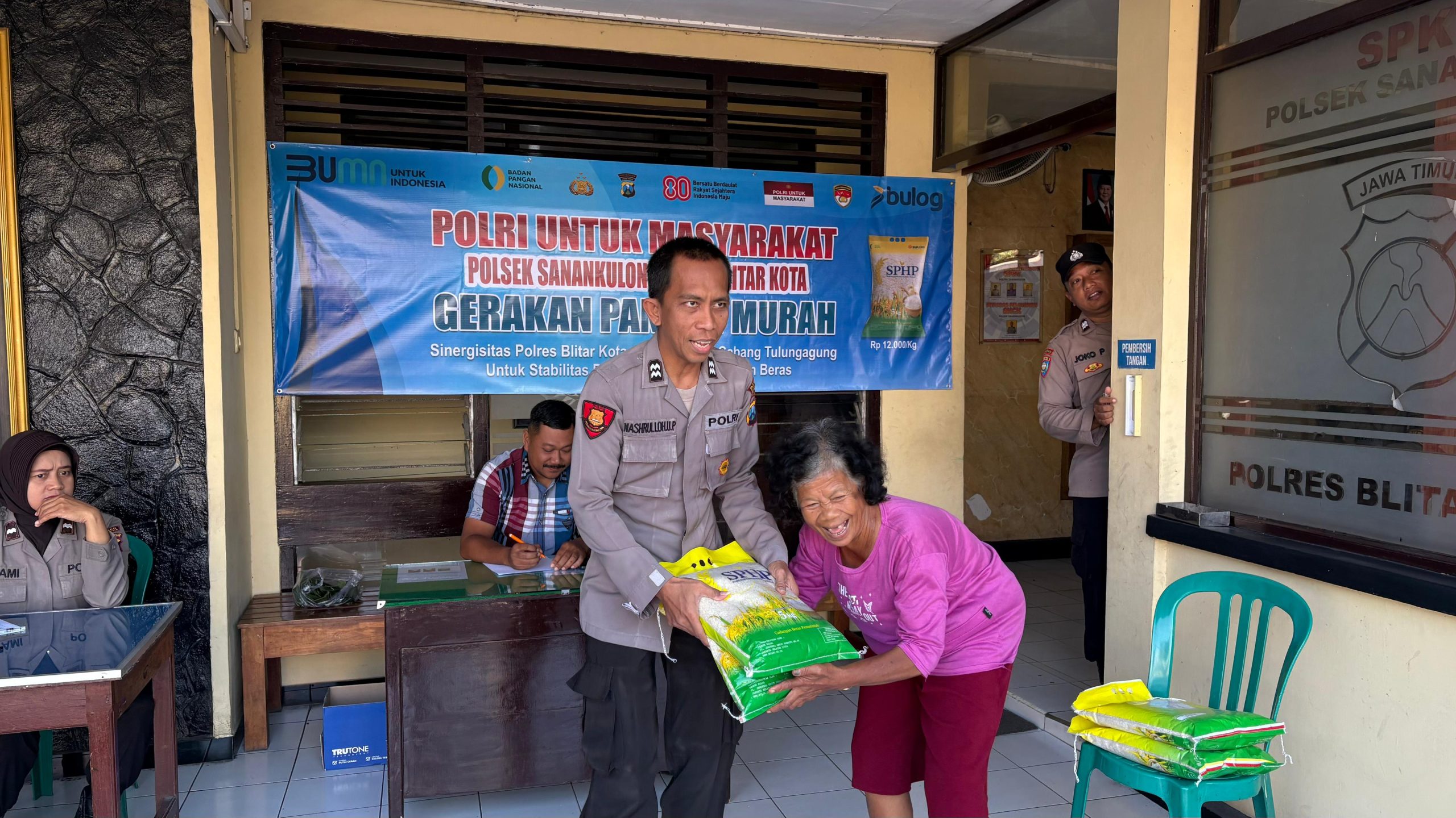 Polsek Sanankulon – Kapolsek Sanankulon AKP Nur Budi S.Pd.I mengatakan bahwa kami beserta anggota siap mendukung program-program yang dicanangkan oleh Pemerintah baik pusat maupun daerah yang bermuara pada penigkatan kesejahteraan rakyat. Salahsatunya adalah GPM atau Gerakan Pangan Murah. Kapolsek menjelaskan bahwa Gerakan pangan murah ini berupa penjualan beras murah SPHP yang diperuntukkan bagi masyarakat umum.