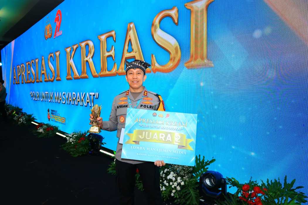 Institusi kepolisian di jajaran Polda Jatim itu berhasil meraih Juara II dalam ajang Lomba Manajemen Media tingkat Polres se-Indonesia yang digelar Mabes Polri.