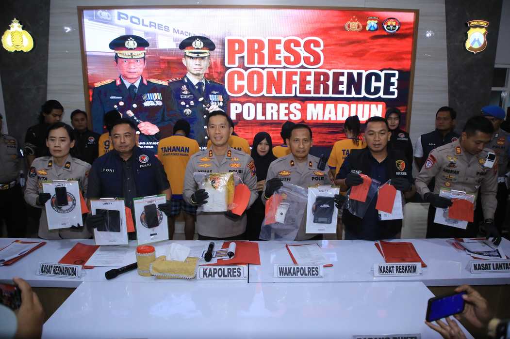 Kapolres Madiun AKBP Kemas Indra Natanegara menjelaskan, penangkapan pertama dilakukan terhadap DS di tepi Jalan Raya Madiun–Ponorogo, Kecamatan Geger, Rabu (04/06/2025). Dari tangan DS, polisi menemukan 0,43 gram sabu-sabu.