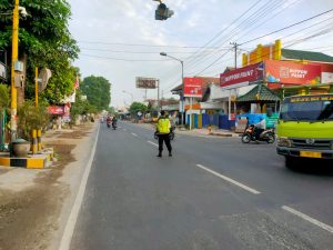 Polsek Sanankulon – Guna mewujudkan situasi keamanan keselamatan ketertiban kelancaran lalu lintas atau kamseltibcar lantas di pagi hari yang aman dan nyaman, personel Polsek Sanankulon melakukan tugas rutin berupa pengaturan arus lalulintas disepanjang Jalan Raya Blitar Kediri Desa Kalipucung. Kegiatan tersebut sebagai wujud atau upaya petugas untuk hadir di tengah masyarakat lebih awal saat masyarakat mengawali aktivitasnya.