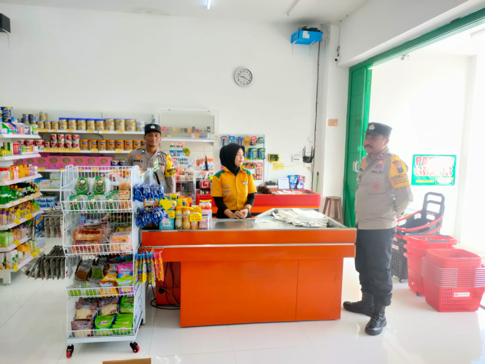 Polsek Sanankulon – Untuk menekan angka kejahatan yang terjadi di wilayah hukum Polsek Sanankulon, petugas Unit Sabhara melaksanakan kegiatan patroli dialogis kamtibmas yang dipimpin oleh KSPKT Aiptu Heru Setyo Budi beserta anggota dengan sasaran pusat pertokoan maupun obyek vital lainnya. Petugas juga berdialogis dengan karyawan minimarket sembari menyampaikan himbauan kamtibmas agar selalu waspada dan berhati hati saat melayani pembeli.