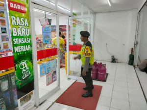 Polsek Sanankulon – Untuk menekan angka kejahatan yang terjadi di wilayah hukum Polsek Sanankulon, petugas Unit Sabhara melaksanakan kegiatan patroli dialogis kamtibmas yang dipimpin oleh KSPKT Aiptu Heru Setyo Budi beserta anggota dengan sasaran pusat pertokoan maupun obyek vital lainnya. Petugas juga berdialogis dengan karyawan minimarket sembari menyampaikan himbauan kamtibmas agar selalu waspada dan berhati hati saat melayani pembeli.