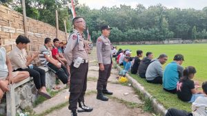 Polsek Sanankulon – Aiptu Turnawan selaku Kanit Propam Polsek Sanankulon memimpin langsung pengamanan pertandingan sepakbola antar kampung yang digelar di Lapangan Desa Gledug. Aiptu Turnawan mengatakan bahwa kami beserta anggota melaksanakan pengamanan sesuai dengan Standart Operasional Prosedur atau SOP yang sudah ditentukan. “Salahsatunya seperti melaksanakan arahan atau APP kepada anggota sebelum melaksanakan pengamanan”. ucapnya.