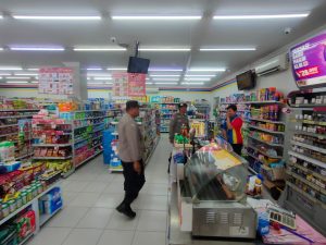 Polsek Sanankulon – Untuk menekan angka kejahatan yang terjadi di wilayah hukum Polsek Sanankulon, petugas Unit Sabhara melaksanakan kegiatan patroli dialogis kamtibmas yang dipimpin oleh KSPKT Aiptu Heru Setyo Budi beserta anggota dengan sasaran pusat pertokoan maupun obyek vital lainnya. Petugas juga berdialogis dengan karyawan minimarket sembari menyampaikan himbauan kamtibmas agar selalu waspada dan berhati hati saat melayani pembeli.