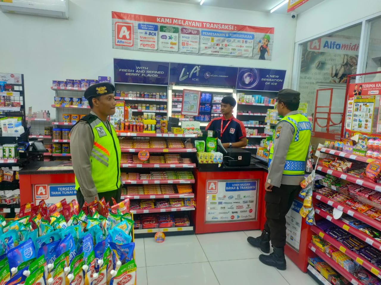 Polsek Sanankulon – Untuk menekan angka kejahatan yang terjadi di wilayah hukum Polsek Sanankulon, petugas Unit Sabhara melaksanakan kegiatan patroli dialogis kamtibmas yang dipimpin oleh KSPKT Aiptu Heru Setyo Budi beserta anggota dengan sasaran pusat pertokoan maupun obyek vital lainnya. Petugas juga berdialogis dengan karyawan minimarket sembari menyampaikan himbauan kamtibmas agar selalu waspada dan berhati hati saat melayani pembeli.