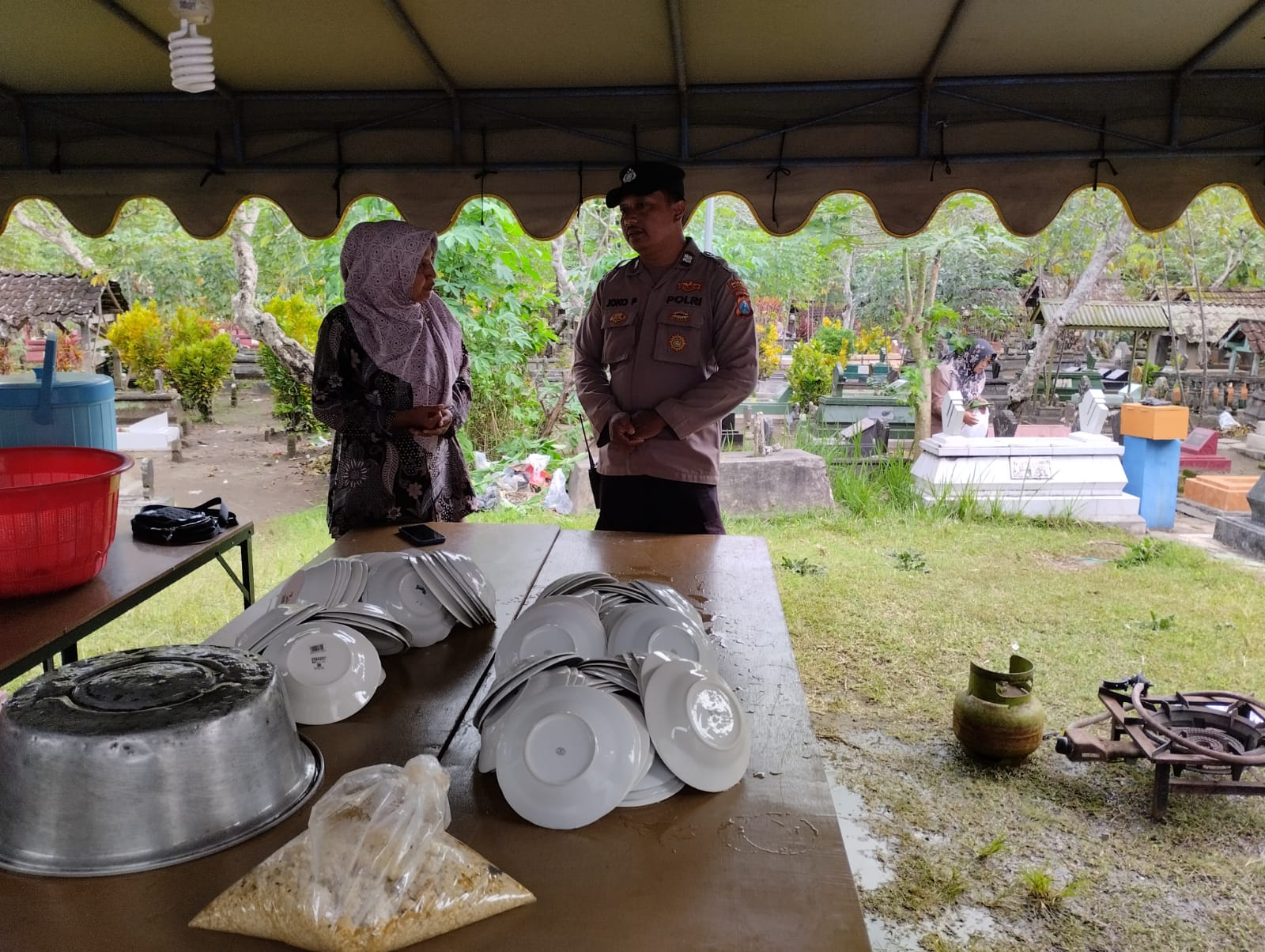Aipda Nuki Wahyu selaku Bhabinkamtibmas menghimbau kepada para peziarah untuk tetap memperhatikan keamanan diri dan kendaraan miliknya. Jangan mengabaikan keamanan karena situasi saat sekarang rawan terjadi tindak kejahatan. Lengkapi kendaraan dengan kunci ganda sebagai upaya pencegahan terhadap potensi terjadinya pencurian sepeda motor. Para peziarah akan tenang dalam berziarah mengirimkan doa kepada para leluhurnya tanpa merasa khawatir menjadi korban kejahtan. tutur Aipda Nuki.