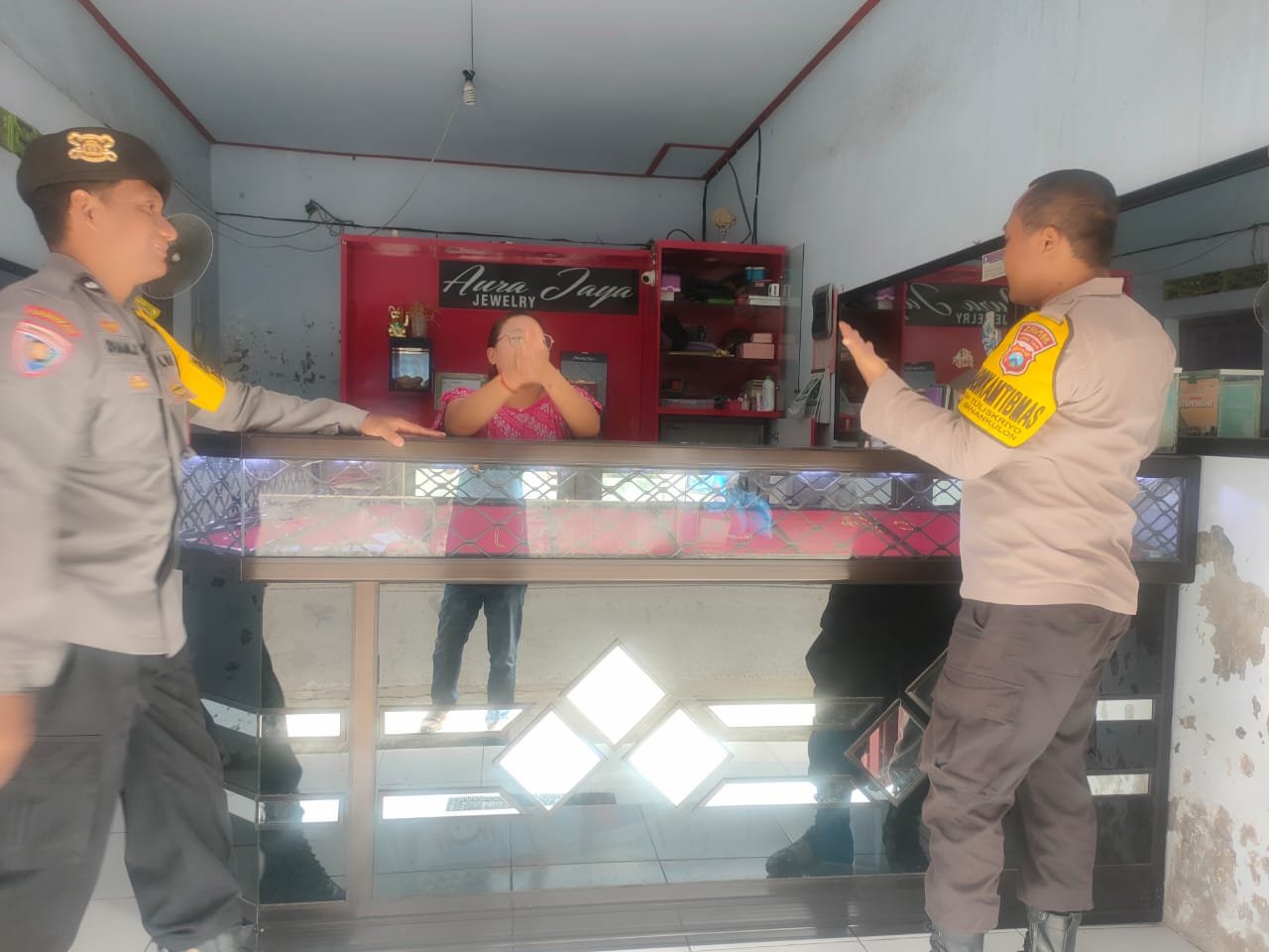 Petugas Aiptu Dian juga menambahkan untuk melengkapi perangkat keamanan seperti pemasangan cctv. “Lengkapi toko emas dengan perangkat CCTV yang dipasang disudut sudut kios sebagai standart keamanan”. ucapnya.
