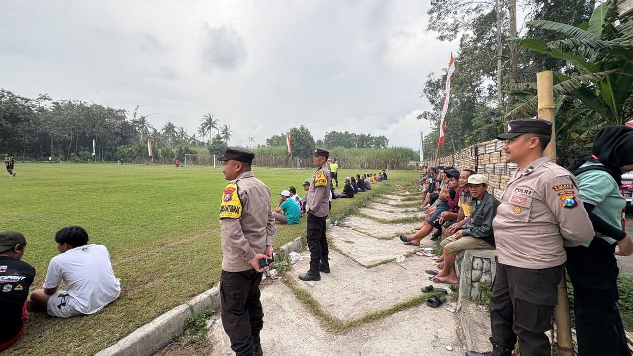 Polsek Sanankulon Kegiatan Rutin Pengamanan Kompetisi Sepak Bola Tarkam Lapangan Desa Gledug Mencegah Perkelahian Antar Pendukung.