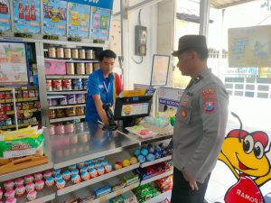Polsek Sanankulon – Untuk menekan angka kejahatan yang terjadi di wilayah hukum Polsek Sanankulon, petugas Unit Sabhara melaksanakan kegiatan patroli dialogis kamtibmas yang dipimpin oleh KSPKT Aiptu Heru Setyo Budi beserta anggota dengan sasaran pusat pertokoan maupun obyek vital lainnya. Petugas juga berdialogis dengan karyawan minimarket sembari menyampaikan himbauan kamtibmas agar selalu waspada dan berhati hati saat melayani pembeli.