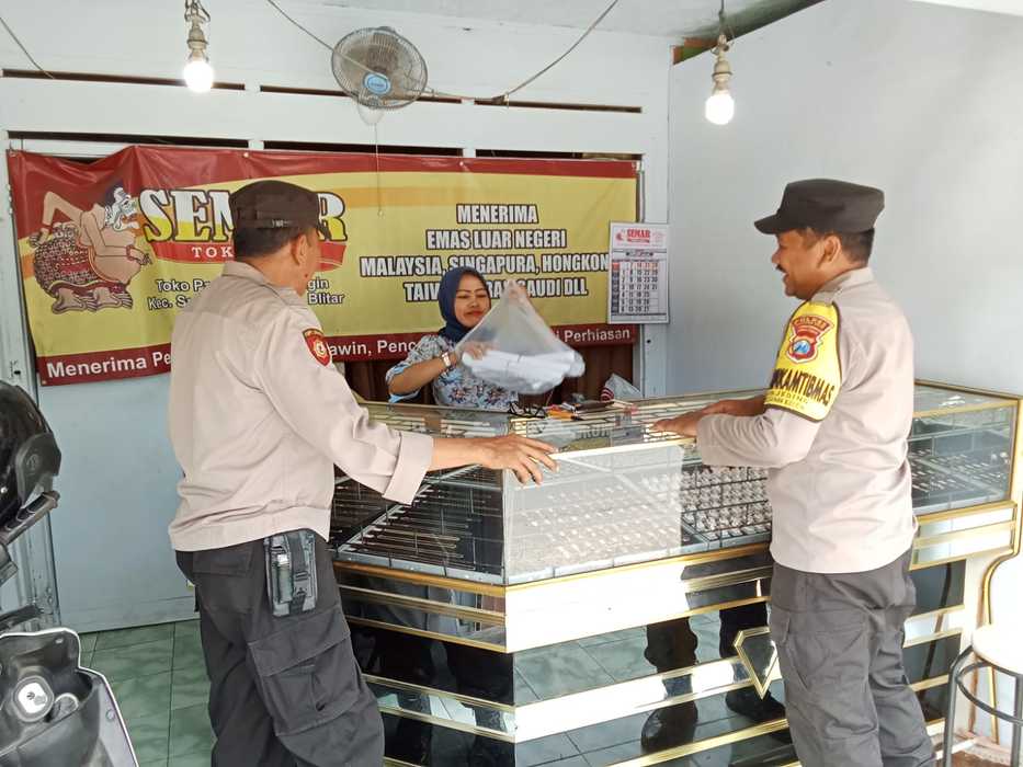 Polsek Sanankulon – Personil Polsek Sanankulon melaksanakan patroli antisipasi tindak kejahatan 3-C  dengan sasaran toko perhiasan emas yang ada di kawasan pasar tradisional Desa Sumberingin Kecamatan Sanankulon.