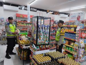 Polsek Sanankulon – Untuk menekan angka kejahatan yang terjadi di wilayah hukum Polsek Sanankulon, petugas Unit Sabhara melaksanakan kegiatan patroli dialogis kamtibmas yang dipimpin oleh KSPKT Aiptu Heru Setyo Budi beserta anggota dengan sasaran pusat pertokoan maupun obyek vital lainnya. Petugas juga berdialogis dengan karyawan minimarket sembari menyampaikan himbauan kamtibmas agar selalu waspada dan berhati hati saat melayani pembeli.