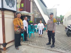 Blitar – Dalam rangka memperingati Hari Kenaikan Isa Almasih, jajaran Polsek Sananwetan bersama personel dari Polres Blitar Kota melaksanakan pengamanan kegiatan ibadah di Gereja Kristen Jawi Wetan (GKJW), yang berlokasi di Jalan Sumatera, Kecamatan Sananwetan, Kota Blitar, pada Kamis pagi (29/5/2025).