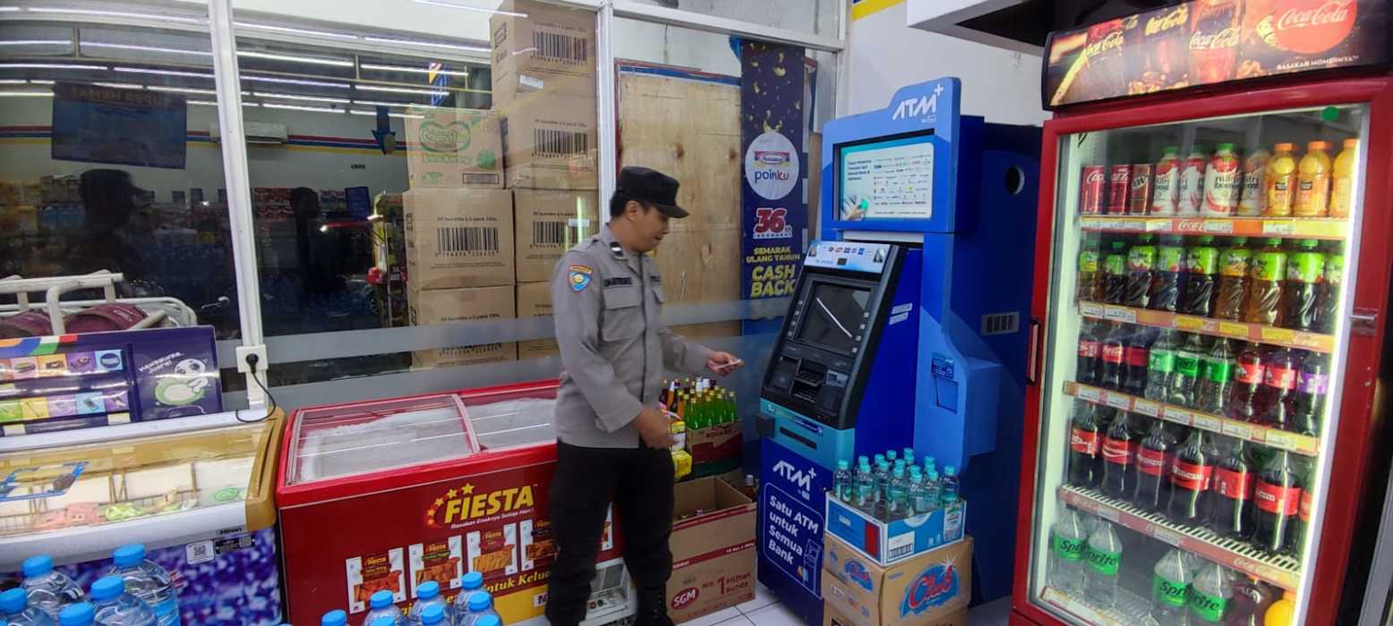 Anggota polsek ponggok laksanakan patroli dialogis di indomaret desa ponggok guna antisipasi peredaran uang palsu dan gangguan kamtibmas lainnya