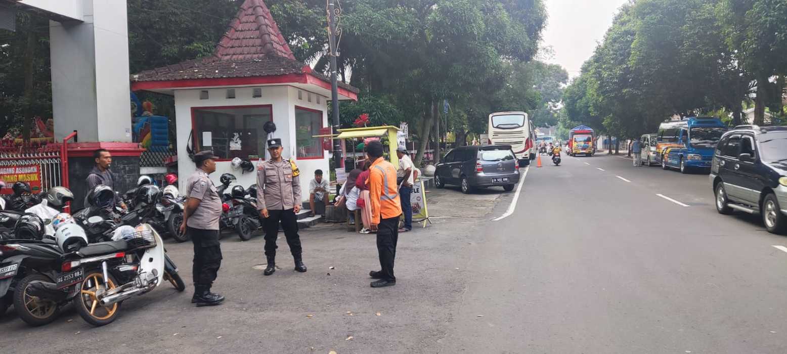 Kegiatan patroli tidak hanya terbatas pada pengawasan situasi, namun juga dilakukan secara dialogis. Dalam kesempatan itu, petugas menjalin komunikasi langsung dengan juru parkir di area Kebon Rojo untuk menyampaikan himbauan kamtibmas. Aipda M. Amiruddin mengingatkan agar para juru parkir menata kendaraan pengunjung dengan tertib dan rapi, guna mencegah gangguan terhadap kelancaran arus lalu lintas di sekitar lokasi wisata.