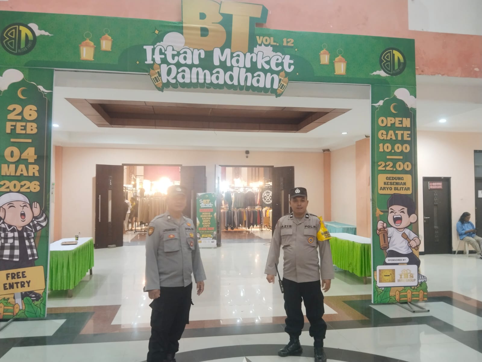 Blitar – Dalam rangka memberikan rasa aman dan nyaman kepada masyarakat selama kegiatan di bulan suci Ramadhan, anggota Polsek Sananwetan melaksanakan pengamanan kegiatan Bazar Thrif Iftar Market Ramadhan yang berlangsung di Gedung Kesenian Aryo Blitar, Jalan Kenari, Kelurahan Plosokerep, Kecamatan Sananwetan, Kota Blitar, pada Rabu malam, 4 Maret 2026.