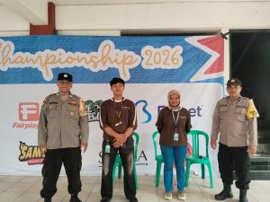 Blitar – Guna memastikan keamanan dan kelancaran jalannya pertandingan, Polsek Sananwetan melaksanakan kegiatan pelayanan pengamanan dalam ajang Pesta Manajemen Championship 2026 yang digelar di GOR Soekarno Hatta, Jalan Kalimantan, Kecamatan Sananwetan, Kota Blitar, pada Jumat (17/04/2026).
