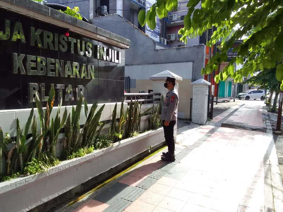 Guna memberikan rasa aman dan nyaman serta mengantisipasi gangguan Kamtibmas dalam pelaksanaan ibadah mingguan di Gereja, personil Polsek Sananwetan melaksanakan pengamanan Gereja di wilayah Kec. Sananwetan. Minggu, (6/11/2022) Pagi.