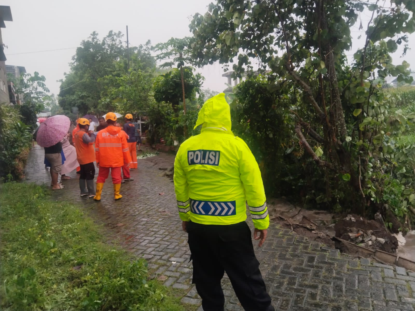 Polsek Sananwetan bergerak cepat menindaklanjuti laporan warga terkait peristiwa tanah longsor yang terjadi di kawasan Perumahan Singgasana Rama, Kelurahan Klampok, Kecamatan Sananwetan, Kota Blitar. Kejadian tersebut berlangsung pada Jumat sore, 21 November 2025 sekitar pukul 16.30 WIB, setelah wilayah tersebut diguyur hujan lebat sejak siang hari.