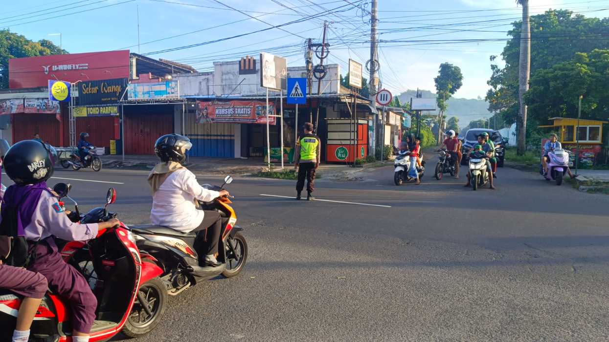 Polres Blitar Kota – Setiap pagi hari anggota Polsek Srengat Polres Blitar Kota selalu hadir di tengah – tengah masyarakat yang membutuhkan pelayanan masyarakat terutama pengguna jalan.Anggota Polsek Srengat melaksanakan kegiatan pengaturan arus lalu lintas baik di depan sekolah maupun di simpul – simpul jalan. Rabu, 06/05/2025.
