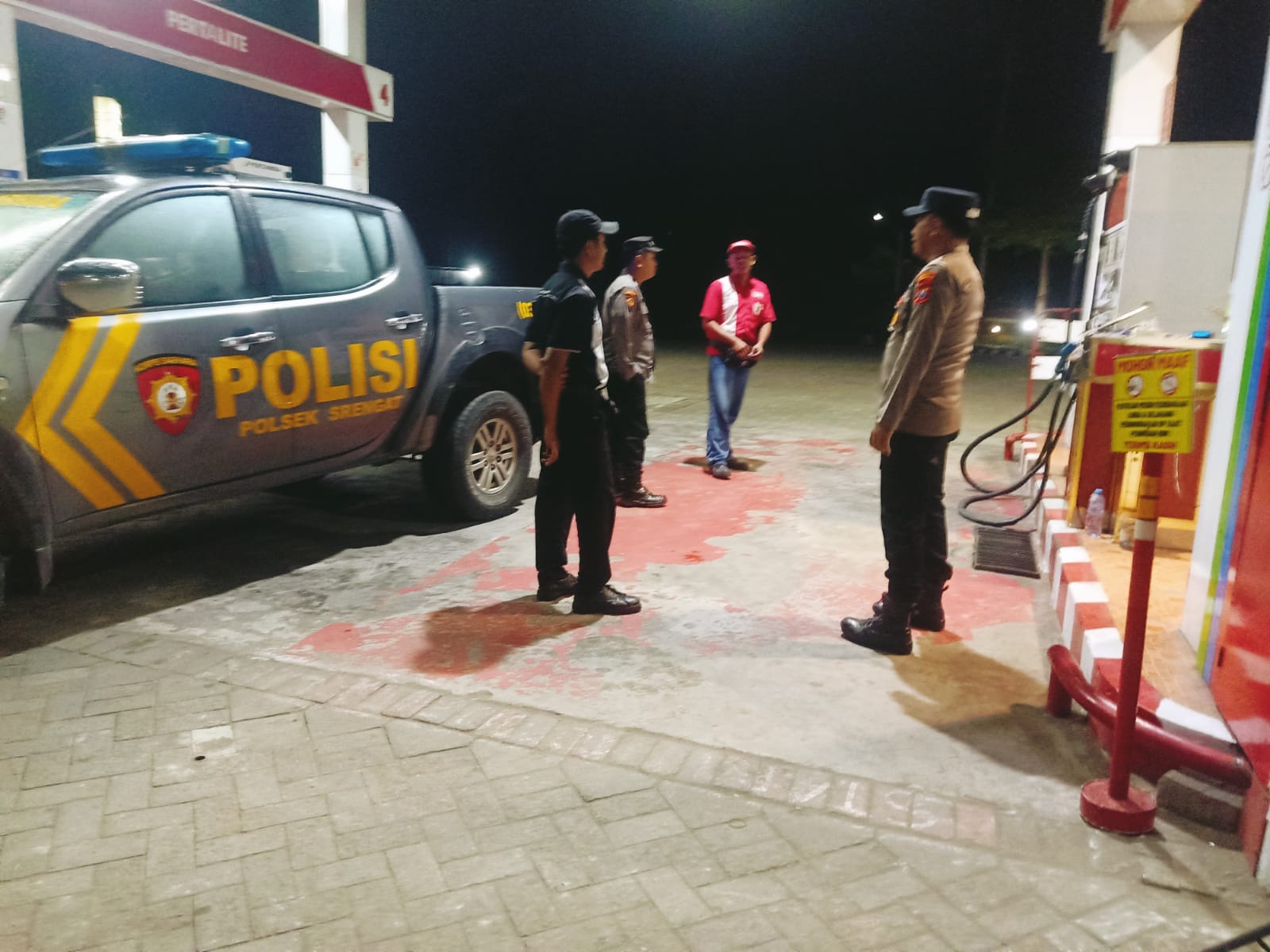 Polsek Srengat – Anggota Polsek Srengat Polres Blitar Kota melaksanakan patroli SPBU guna antisipasi pelaku tindak pidana kejahatan serta gangguan kamtibmas lainnya, Selasa, 23/12/2025.