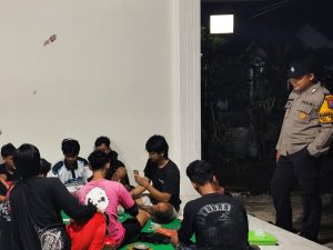 Patroli Polsek Nglegok berikan himbauan Kamtibmas kepada warga cegah tindak kejahatan di lingkungan saat malam hari