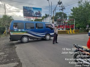 Polres Blitar Kota – Setiap pagi hari anggota Polsek Srengat Polres Blitar Kota selalu hadir di tengah – tengah masyarakat yang membutuhkan pelayanan masyarakat terutama pengguna jalan.Anggota Polsek Srengat melaksanakan kegiatan pengaturan arus lalu lintas baik di depan sekolah maupun di simpul – simpul jalan. Selasa, 18/11/2025.