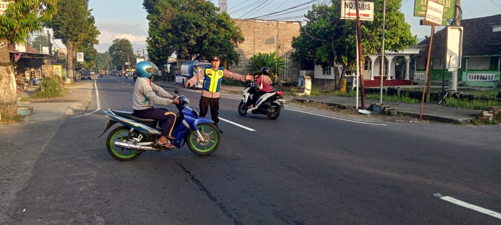 Polres Blitar Kota – Setiap pagi hari anggota Polsek Srengat Polres Blitar Kota selalu hadir di tengah – tengah masyarakat yang membutuhkan pelayanan masyarakat terutama pengguna jalan.Anggota Polsek Srengat melaksanakan kegiatan pengaturan arus lalu lintas baik di depan sekolah maupun di simpul – simpul jalan. Jumat, 24/04/2026.