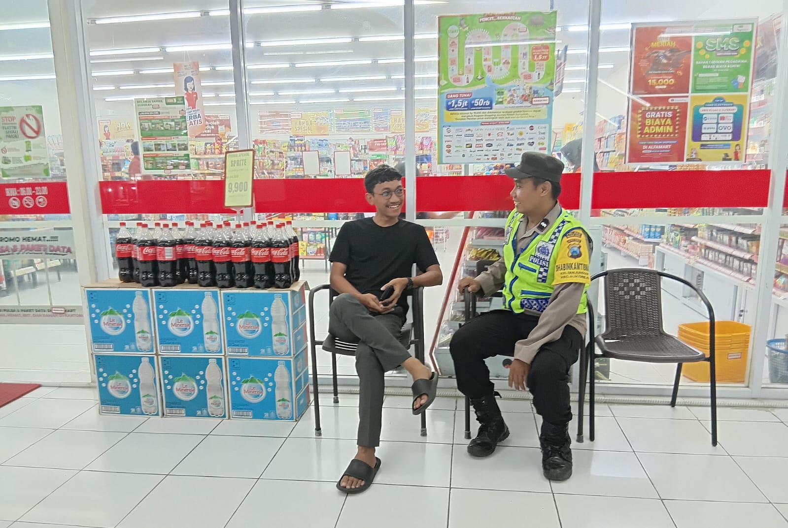 Polsek Sukorejo- Kapolsek Sukorejo Kompol Imam Subechi, SH melalui anggota piket fungsi melaksanakan patroli dialogis dengan karyawan Pertokoan Indomaret. Sabtu, 31 Mei 2025.