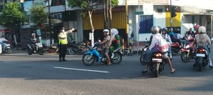 Polsek Sukorejo – Anggota Polsek Sukorejo melaksanakan kegiatan pengaturan lalu lintas di Jalan Tanjung, Kecamatan Sukorejo, Kota Blitar. Selasa, 23 September 2025.