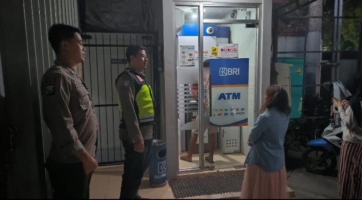 Dalam kegiatan patroli ini, anggota melaksanakan pengecekan gerai ATM BNI dan berdialogis dengan satpam perbankan.