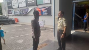 Patroli yang dilakukan Personil Polsek Sukorejo Polres Blitar Kota untuk mencegah tindak kejahatan di pertokoan Graha Bangunan dan toko-toko emas lainnya.