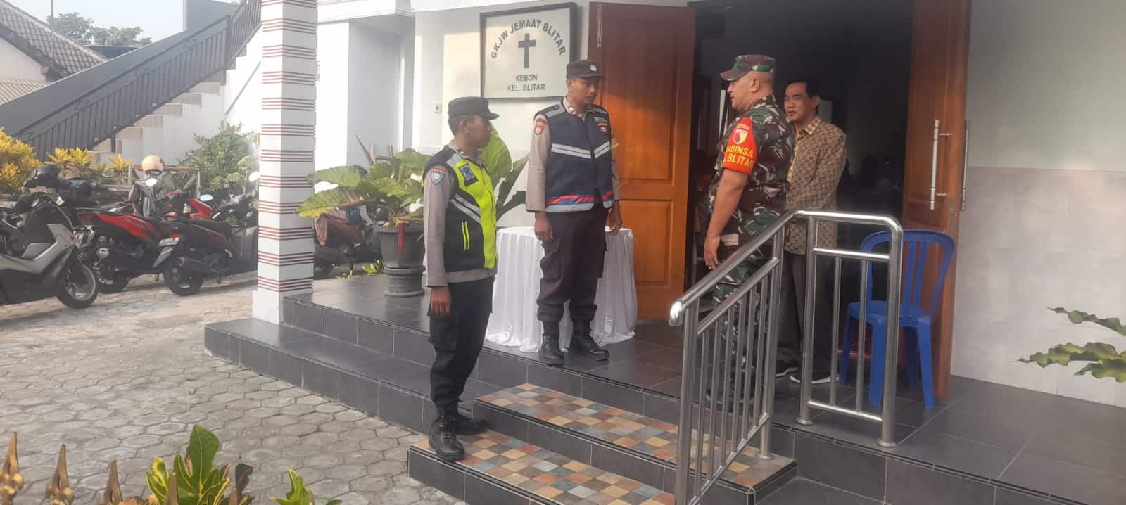 Hadir dalam pelaksanaan Minggu Kasih Panit Binmas Aipda Sudadi bersama Aipda Dian dan Jemaat dari Gereja GKJW.