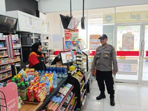 Polsek Polsek – Anggota Polsek Sukorejo melaksanakan kegiatan patroli dan dialogis dengan masyarakat di Indomart wilayah Kecamatan Sukorejo, Kota Blitar, pada Sabtu (18/10/2025).