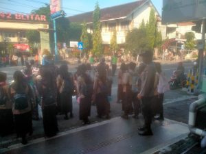 Kegiatan ini rutin dilakukan untuk membantu kelancaran arus kendaraan sekaligus menyeberangkan anak sekolah maupun warga yang beraktivitas di pagi hari.
