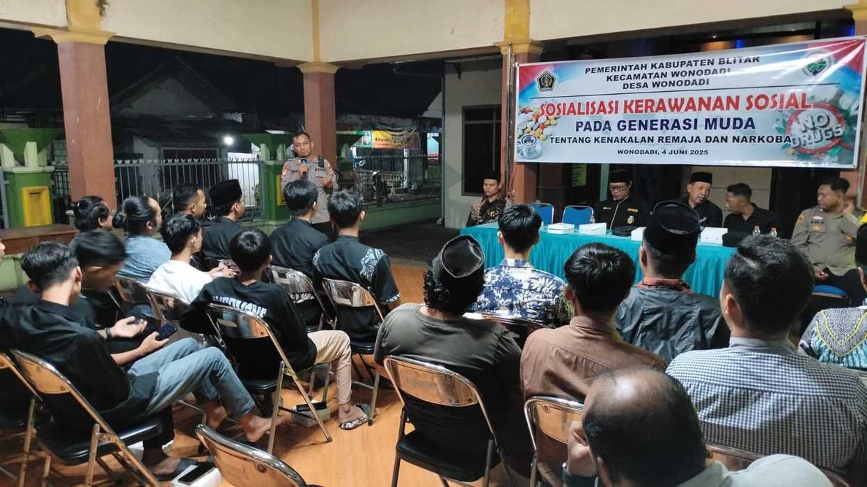 Wonodadi, 4 Juni 2025 – Dalam rangka menciptakan generasi muda yang tangguh, berkarakter, dan bebas dari pengaruh negatif, Polsek Wonodadi Polres Blitar Kota turut ambil bagian dalam giat sosialisasi kerawanan sosial tentang kenakalan remaja dan bahaya narkoba yang diselenggarakan di Balai Pertemuan Kantor Desa Wonodadi pada Rabu malam, 4 Juni 2025 pukul 20.00 WIB.