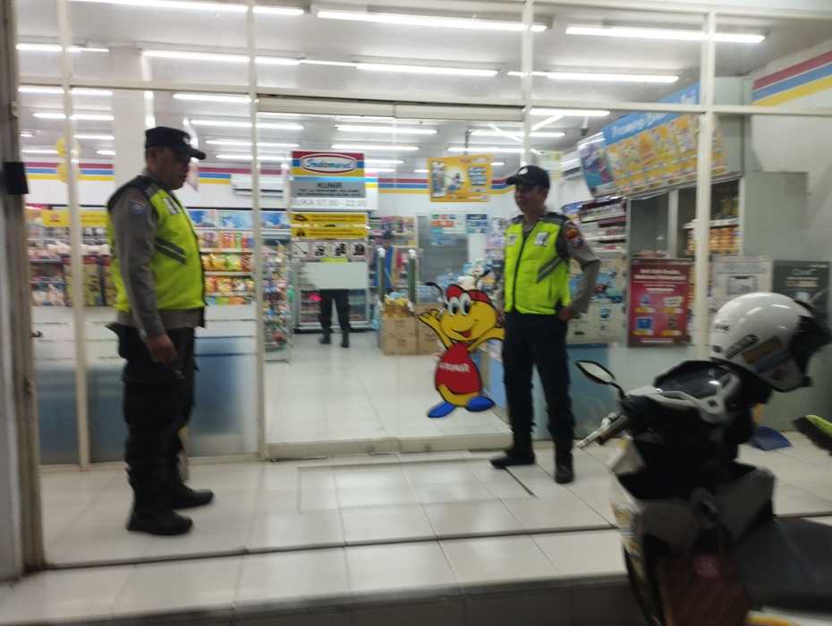 Anggota polsek ponggok laksanakan patroli dialogis di indomaret desa ponggok guna antisipasi peredaran uang palsu dan gangguan kamtibmas lainnya