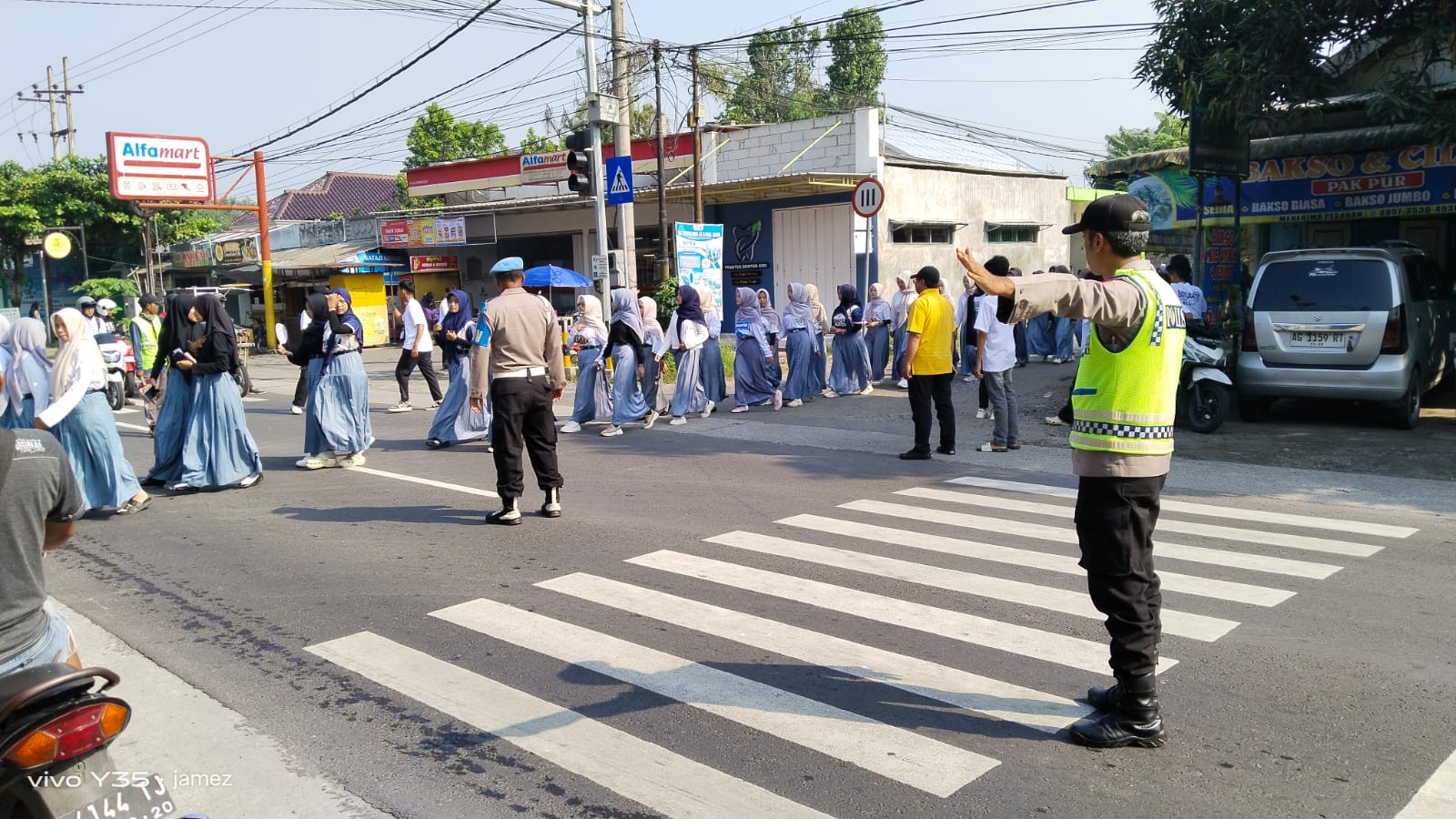 Dalam pelaksanaannya, petugas melakukan pengaturan arus kendaraan serta membantu penyeberangan para peserta, khususnya siswa-siswi, agar kegiatan berjalan dengan aman dan tertib. Kehadiran anggota Polri di lapangan mendapat respon positif dari masyarakat dan pengguna jalan.