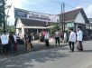 ANGGOTA BINMAS MELAKSANAKAN PEMASANGAN BANNER DI OBJEK WISATA KOLAM RENANG GURAMI SEDURI DESA WONODADI