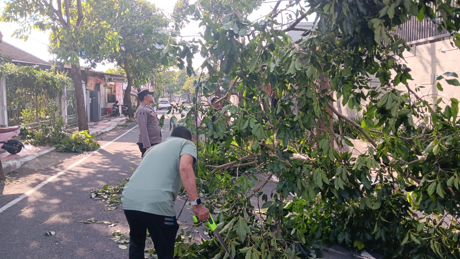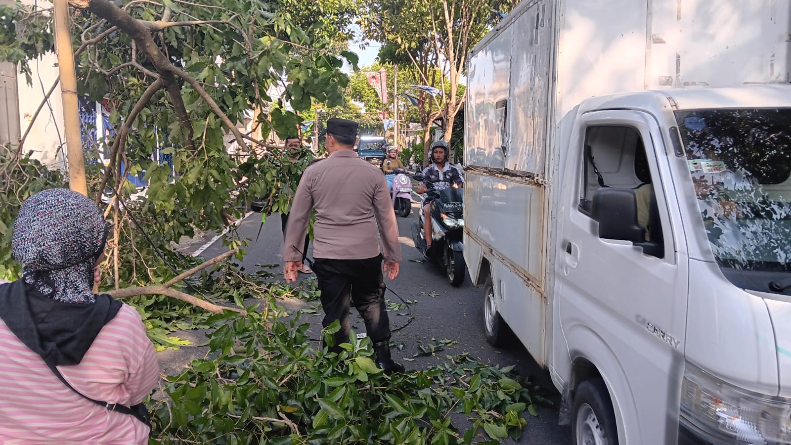 Setibanya di lokasi, petugas mendapati cabang pohon dalam kondisi patah dan menjuntai hingga mengenai kabel listrik, sehingga berpotensi membahayakan keselamatan masyarakat serta mengganggu arus lalu lintas. Petugas Polsek Sananwetan kemudian melakukan pengamanan awal di sekitar lokasi dengan mengimbau warga agar berhati-hati dan tidak mendekati area yang berisiko.