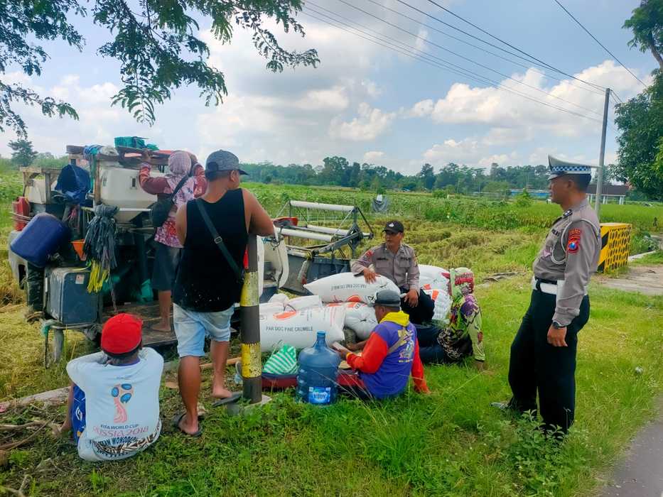 Srengat – Anggota Patroli Polsek Srengat Polres Blitar Kota Polda Jawa Timur melaksanakan patroli dialogis dengan menjumpai petani yang sedang merawat sawahnya Kelurahan Togogan Kecamatan Srengat Kabupaten Blitar, Rabu, (16/04/2025).