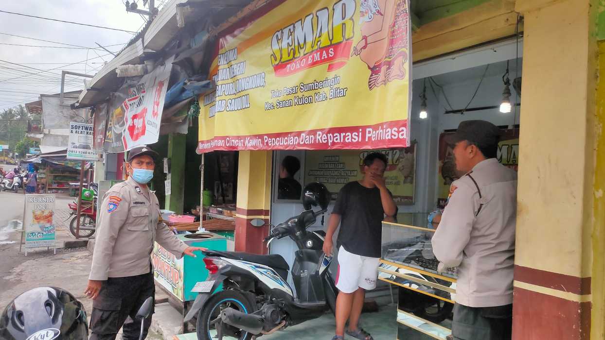 Polsek Sanankulon – Personil Polsek Sanankulon melaksanakan patroli antisipasi tindak kejahatan 3-C  dengan sasaran toko perhiasan emas yang ada di kawasan pasar tradisional Desa Sumberingin Kecamatan Sanankulon.