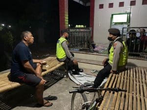 Anggota Polsek Srengat melaksanakan patroli dialogis dengan sasaran pos kamling, Kamis, (07/07/2022).