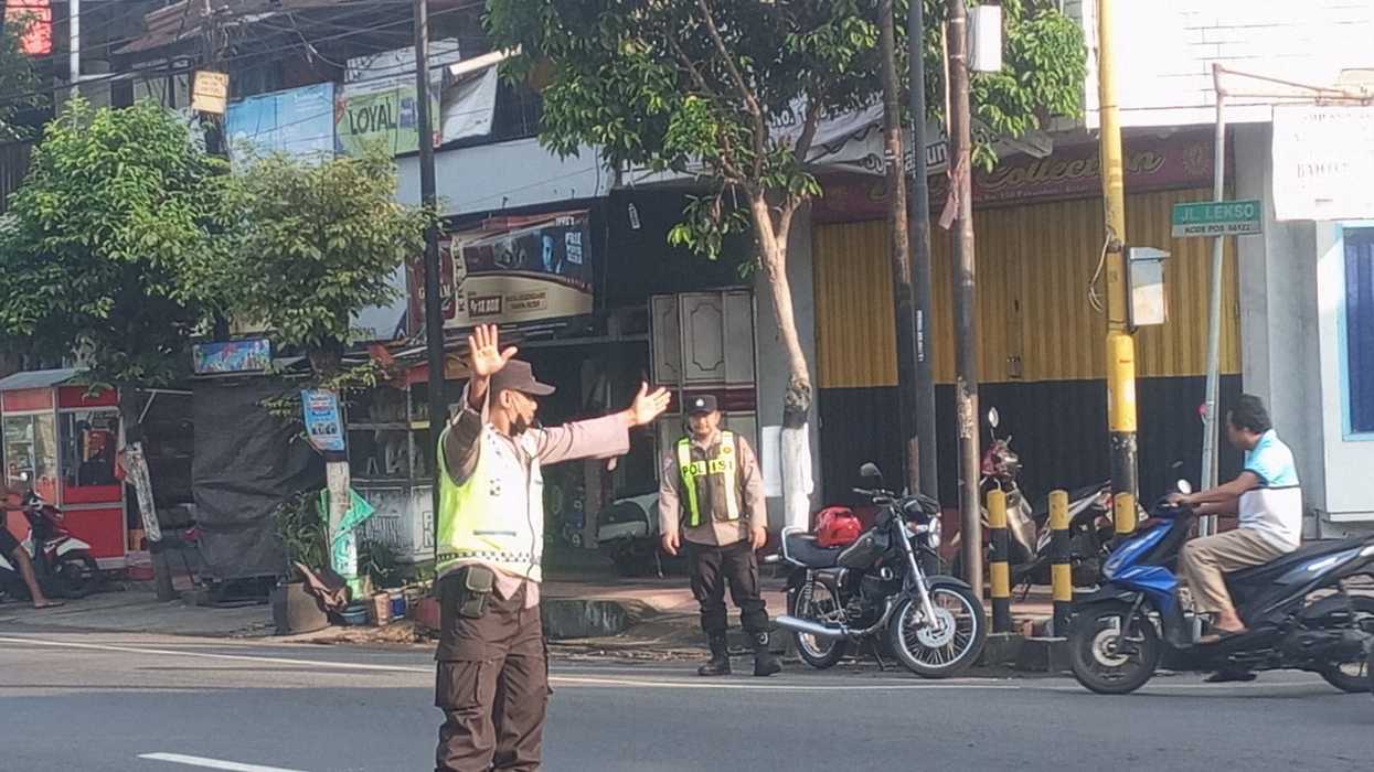 Kehadiran polisi di lapangan bertujuan untuk membantu kelancaran arus lalu lintas serta memberikan rasa aman dan nyaman kepada masyarakat yang beraktivitas di pagi hari.