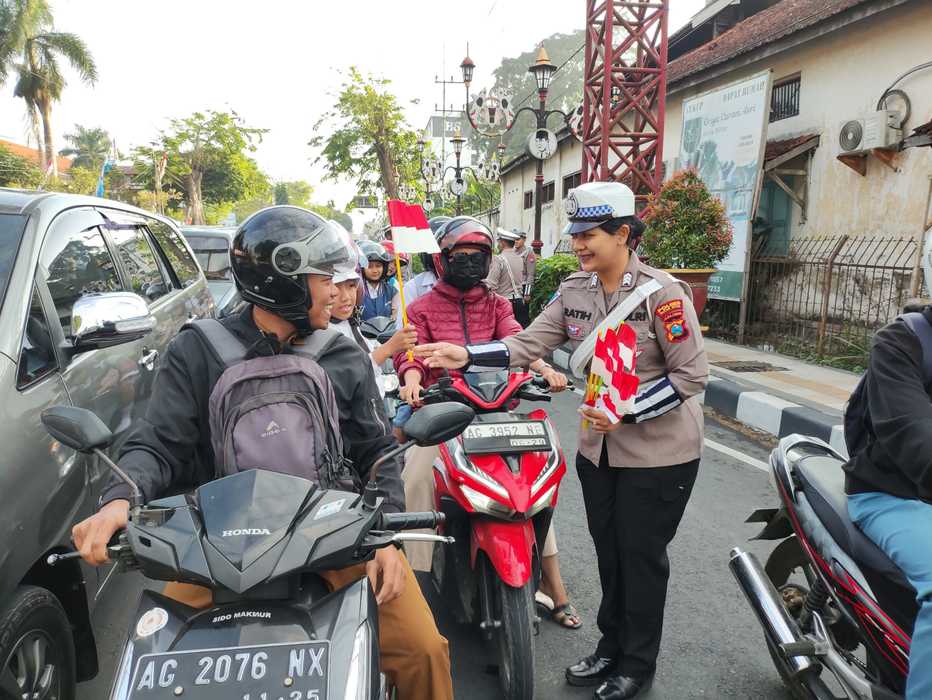 Selain membagikan bendera, petugas juga memberikan himbauan tertib berlalu lintas serta mengingatkan pentingnya menjaga keamanan dan ketertiban menjelang perayaan kemerdekaan. Kegiatan ini pun disambut antusias oleh para pengguna jalan.