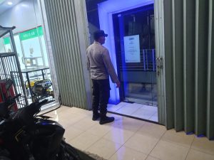Petugas patroli melakukan pemantauan situasi di sekitar lokasi ATM serta memastikan kondisi dalam keadaan aman dan terkendali.