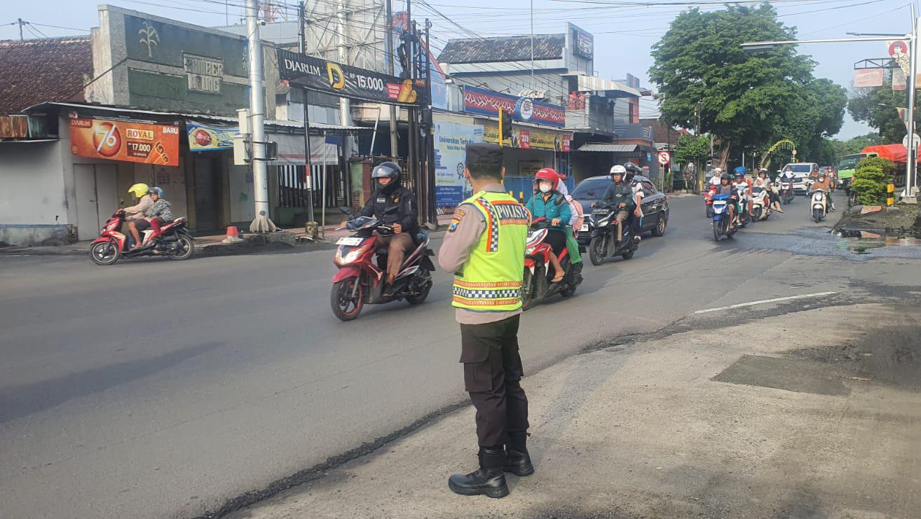 Pos Pagi, Petugas Polsek Sukorejo Atur Lalu Lintas untuk Cegah Kemacetan